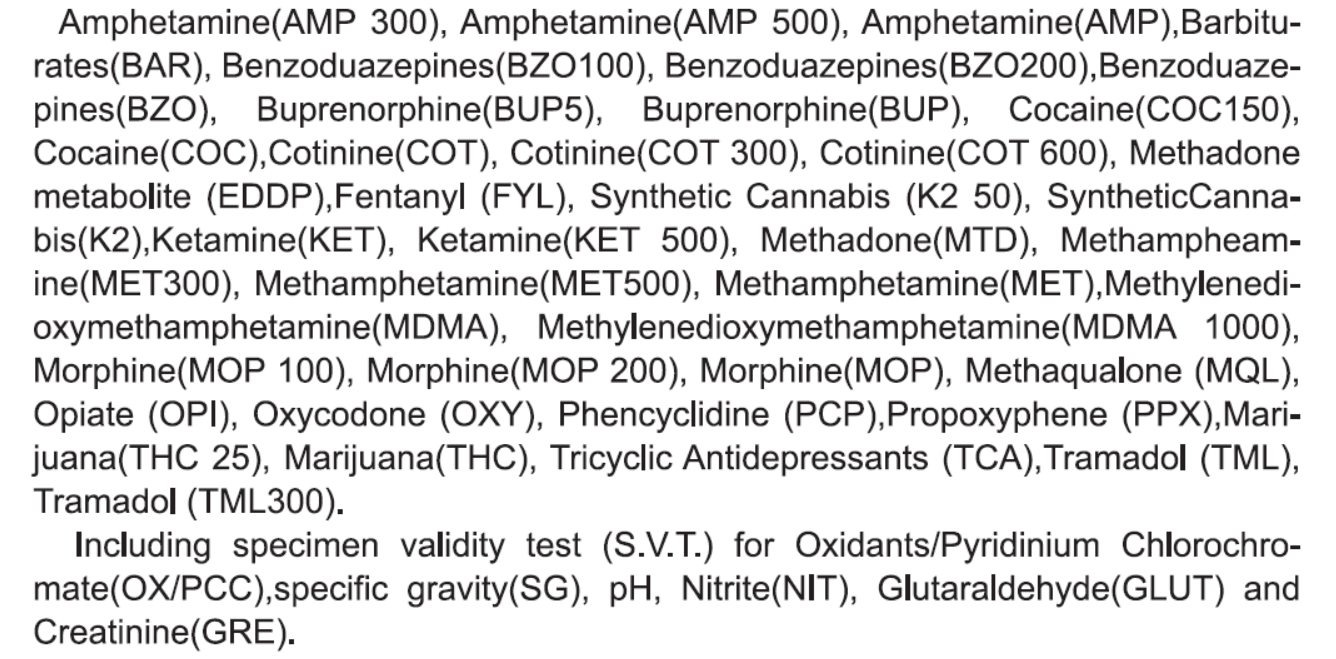The Multi-drug One Step Test Kit (Colloidal Gold Method) is a rapid chromatographic immunoassay for the qualitative detection for the drugs and drug metabolites inhuman urine.